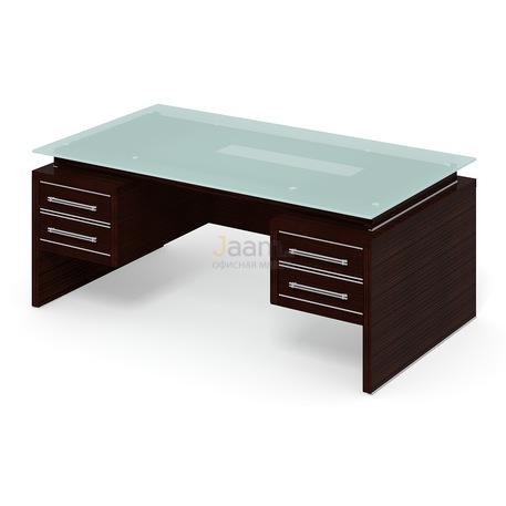 Стол руководителя ПК-ДПК-СТ180Х100СМ/ПТ2 №46023 - столешница: лдсп 38 мм, кромка: пвх 0,45мм, покрытие: ламинат, стекло: матовое.